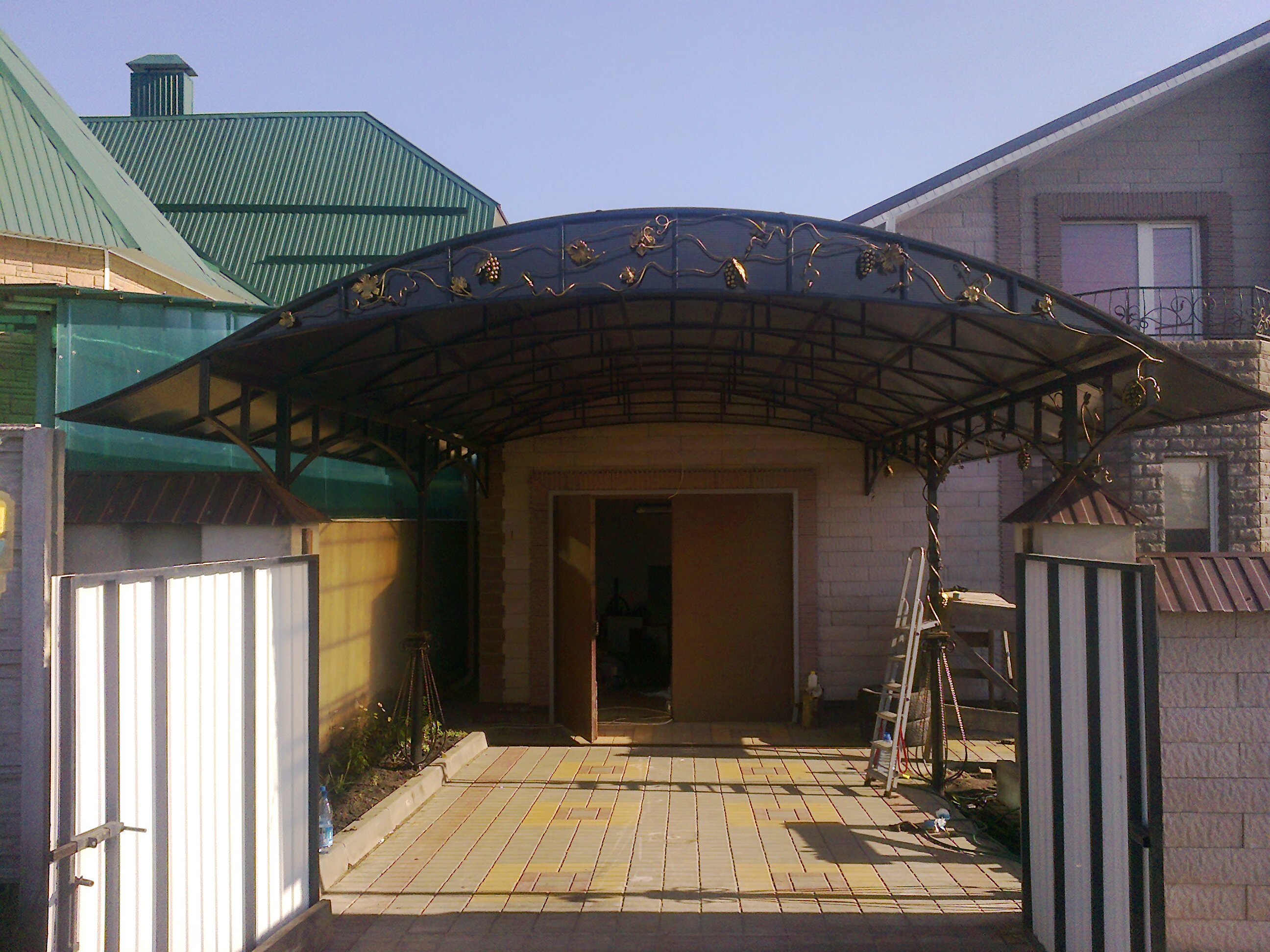 За день на даче изготовили арочный навес 5 на 7 с покрытием поликарбоната. Привезли уже готовые крашенные фермы и весь остальной материал. Все за собой убрали и увезли мусор. Молодцы!