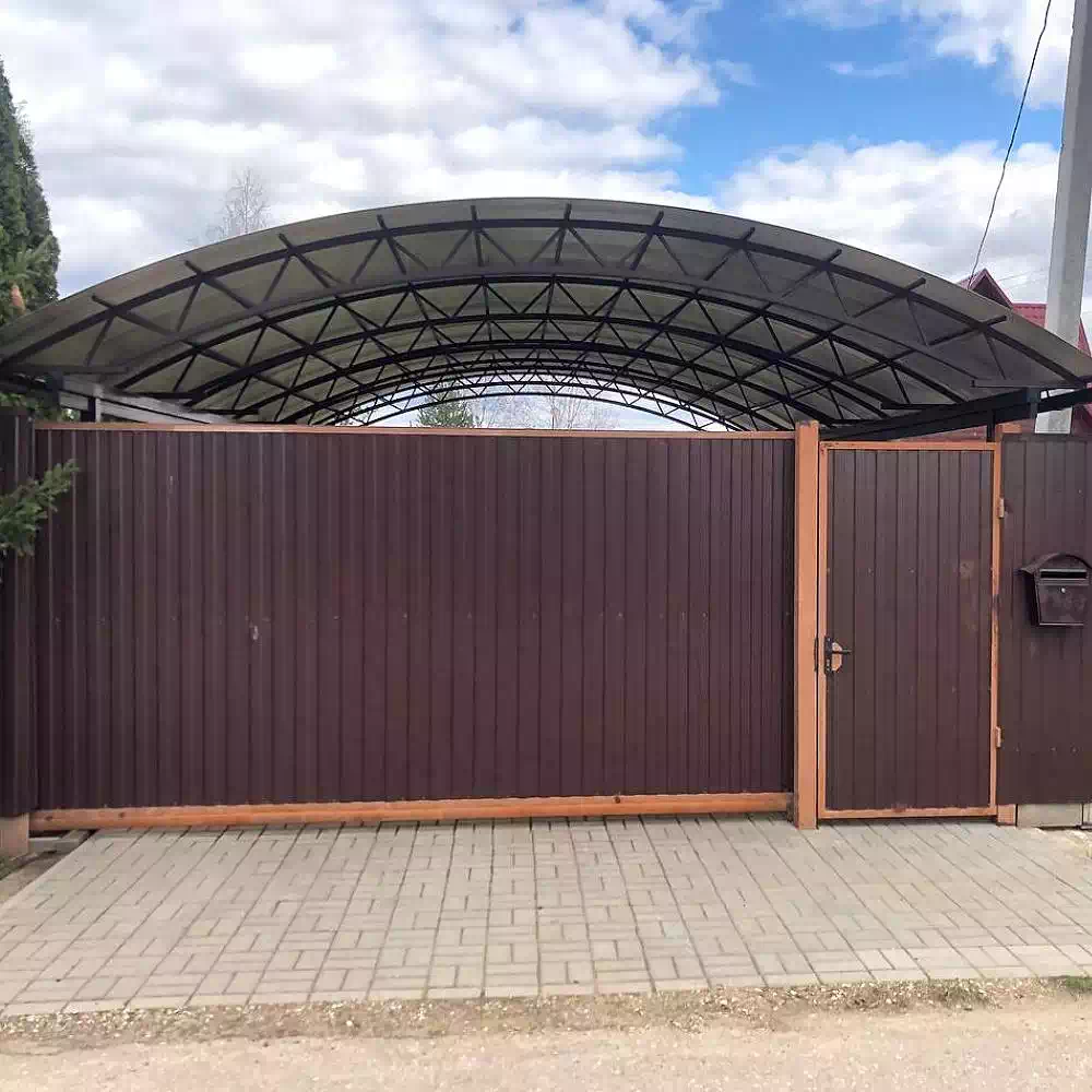 За день на даче изготовили арочный навес 5 на 7 с покрытием поликарбоната. Привезли уже готовые крашенные фермы и весь остальной материал. Все за собой убрали и увезли мусор. Молодцы!