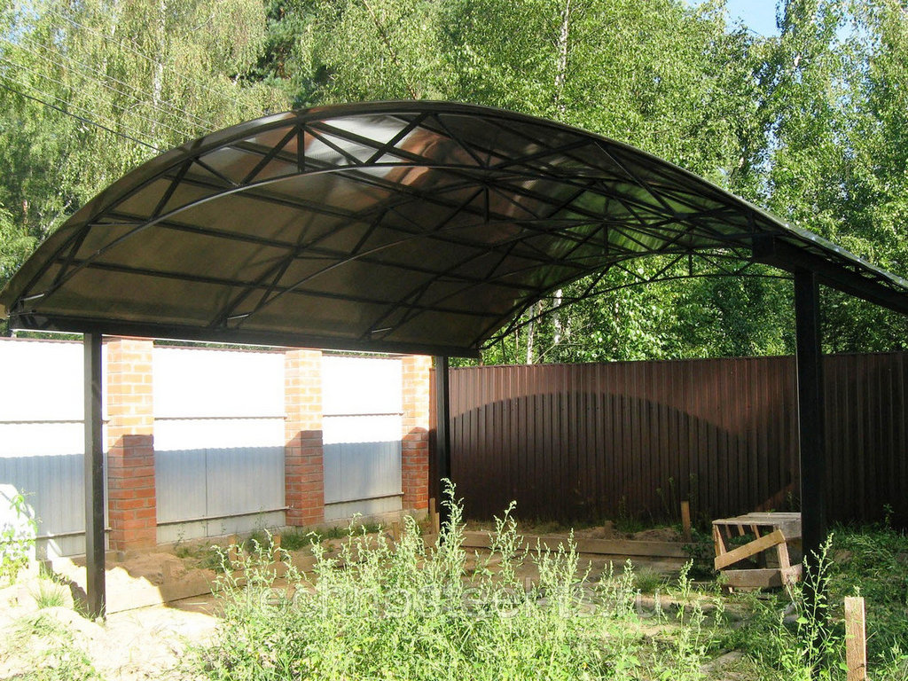 За день на даче изготовили арочный навес 5 на 7 с покрытием поликарбоната. Привезли уже готовые крашенные фермы и весь остальной материал. Все за собой убрали и увезли мусор. Молодцы!