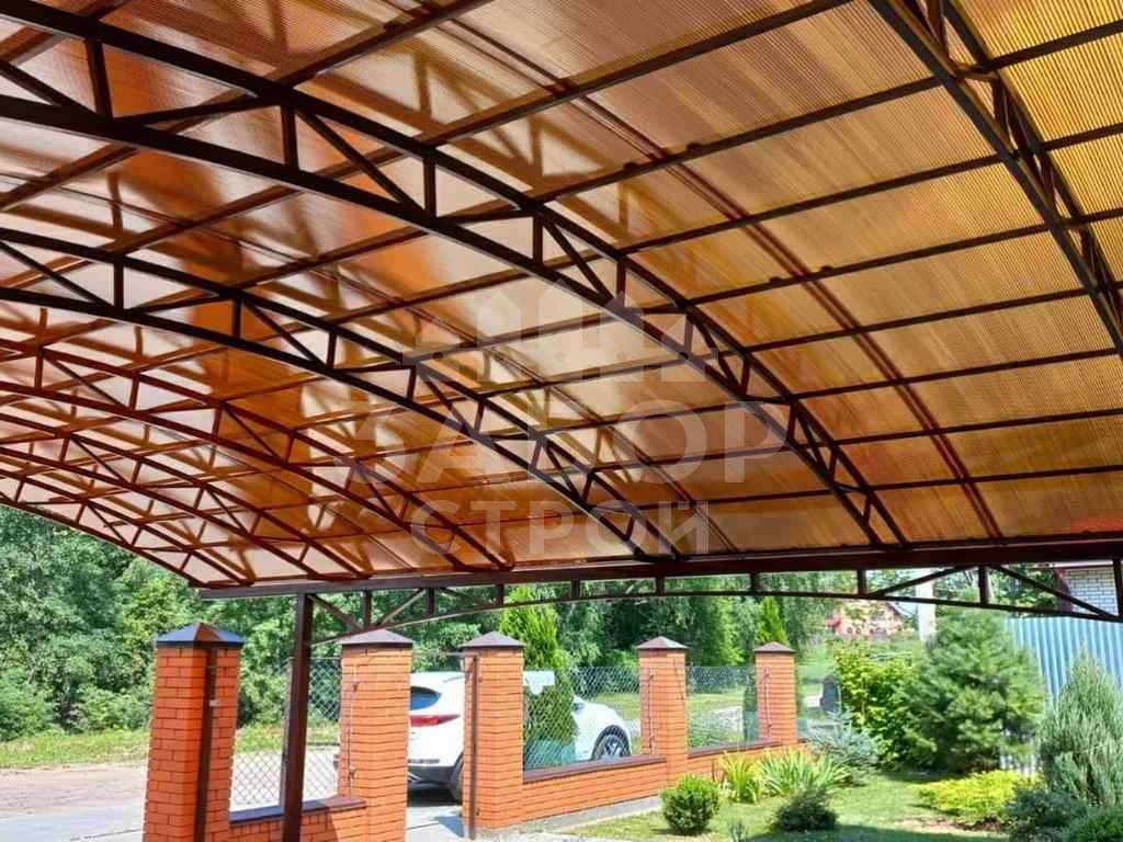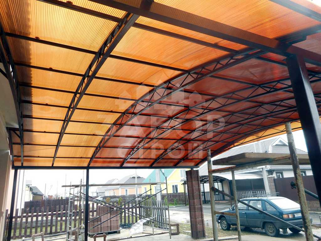 Поэтому компания "НавесСтрой" настоятельно рекомендует не экономить, а усилить каркас навеса из сотового поликарбоната более жёсткими профилями с увеличенной толщиной металла и количеством несущих ферм.